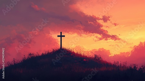 Cross on a hill at sunset
