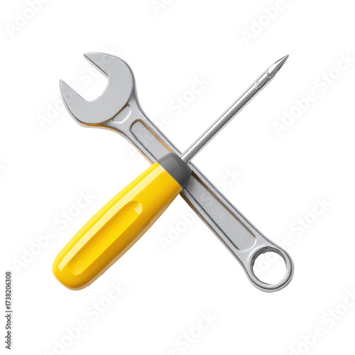 Crossed wrench and screwdriver on transparent background