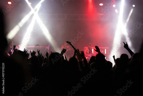 festival, crowd, audience, concert, nightlife, people, event, night, silhouette, fan, performance, party, fun, club, show, live, light, dance, music, stage, rock, cheer, entertainment, happiness, popular, celebration, perform, pop, excitement, sound, musician, illuminated, group, band, disco, youth, happy, cheerful, discotheque, loud, star, clap, jam, act, nightclub, art