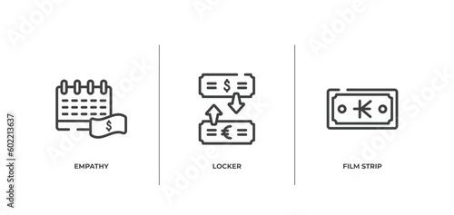 crowdfunding outline icons set. thin line icons sheet included empathy, locker, film strip vector.