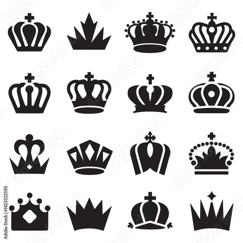 Crown Logo Design Vector, Crown Silhouette Design, Crown vector, silhouette, icon. Crown icons, vector set. Crown symbol set. King, Princess crowns. Collection of crown silhouette,
