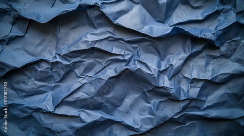 Crumpled Dark Blue Paper Background, Textured Surface of Creased and Wrinkled Paper for Design