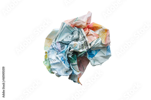 Crumpled Dollar Bills and Currency Wasteful Spending Finance