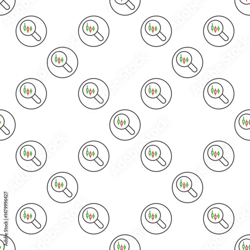 Crypto Trading vector Magnifying Glass with Candlestick Chart linear round seamless pattern
