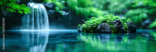 Crystal clear waters cascading over moss-covered stones in a secluded forest, a hidden gem of natural beauty