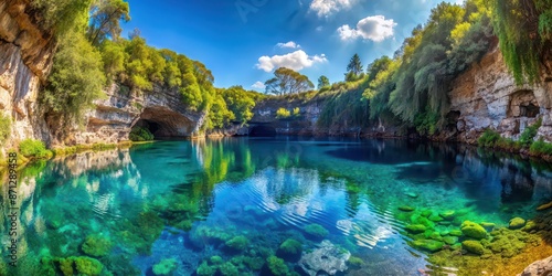Crystal clear waters of famous melissani lake on Kefalonia island, Greece, Kefalonia, Greece, famous