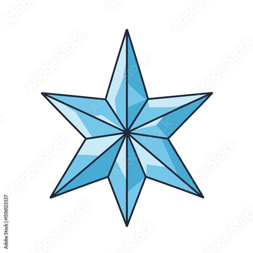 Crystal star with icy blue facets, geometric minimal style, white background
