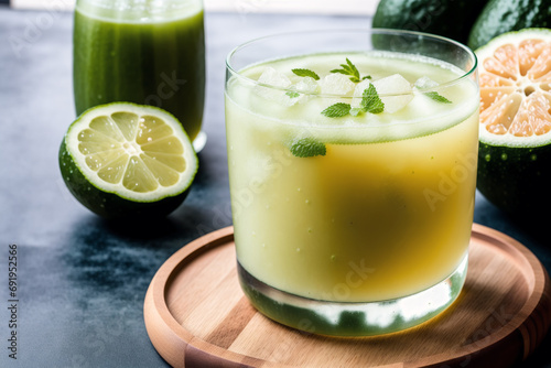 Cucumber smoothie in a glass on a black background. Green smoothie with lime and mint. Healthy food concept. Generative AI