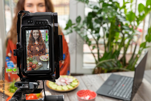 culinary, recording, session, video, salad, woman, girl, window, camera, vegan, vegetable, receipe, radish, cucumber, arugula, rocket, fresh, cooking, female, content, table, diet, home, homemade, caucasian, healthy, food, plate, meal, professional, making, blog, slice, laptop, notebook, bowl, prop, houseplant, technology, vegetarian, teaching
