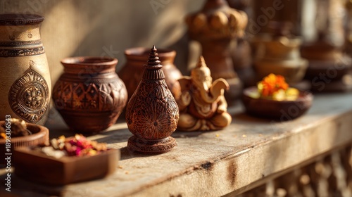 Cultural Still Life with Traditional Handicrafts and Warm Natural Lighting