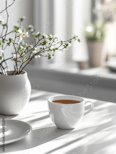 hot drink, cup, tea, mug, white, morning, breakfast, calm, relaxation, table, sunlight, minimalistic, interior, home, serene, warmth, comfort, calmness, peaceful