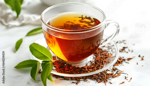 Cup of rooibos tea on a wooden table