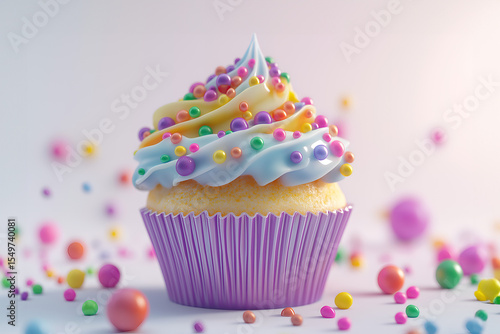 cupcake with colorful frosting and sprinkles isolated on a white background