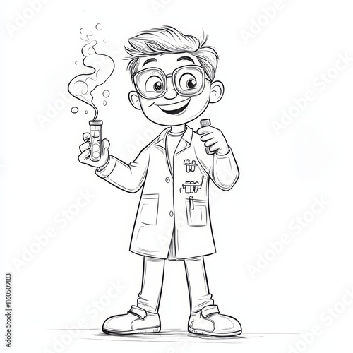 scientist, science, experiment, test tube, illustration, cartoon, chemistry, research, laboratory, education, children, children, beaker, eyeglass, study, student, labcoat, smile, learning, happy, curious, invention, discovery, innovation, cognition, school, educational, equipment, glassware, medicals, scientific, technology, character, playful, positive, imagination, academic, achievement, smart, intelligence, analytical, explore, exploration, fun, young, adorable