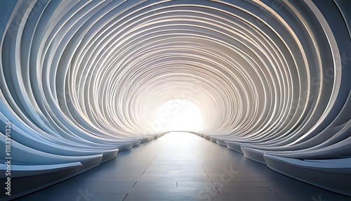 Curved elements form a bright tunnel towards an open end.