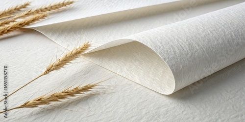 Curved White Textured Paper with Wheat, Minimalist Composition, Natural Texture, Paper Craft, Paper Design Paper Texture, Wheat Stalks