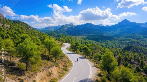 road, mountain, curve, landscape, nature, sky, cloud, greenery, path, travel, scenic, vehicle, sunlight, adventure, exploration, highway, countryside, tree, elevation, serene, picturesque, winding, driving, scenery, beautiful, hillside, terrain, peaceful, hiking, summer, destination, view, horizon, asphalt, journey, fresh, freedom, earth, rural, vibrant, natural, environment, vista, calmness, remote, leisure, geology
