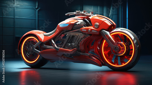 motorcycle, custom, neon, garage, modern, wheel, design, craftsmanship, orange, glowing, vehicle, powerful, showcase, technology, innovation, speed, style, solid, machine, metal, luxury, road, performance, automotive, mechanic, aesthetic, engineering, sport, futuristic, transportation, thrill, ride, urban, creativity, detail, bold, shine, display, line, silhouette, parked, dynamic, racing, sleek, beauty, enhancement, feature, art