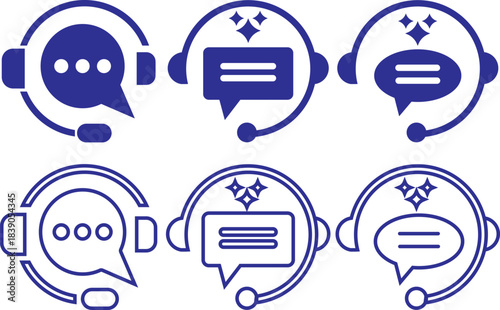 customer support ai icon set. support and communication concept. chat headphone sign. Customer Support and Communication. Ideal for virtual help tools. Ideal for virtual help tools
