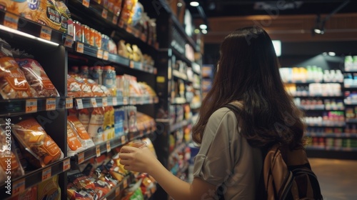 Customers happily browsing through the electromagnetic section filled with packaged snacks and drinks.