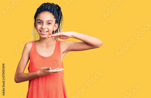 Cute african american girl wearing casual clothes gesturing with hands showing big and large size sign, measure symbol. smiling looking at the camera. measuring concept.