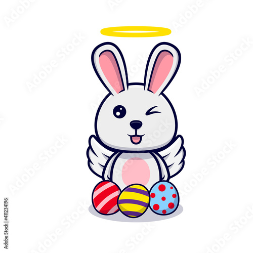 Cute angel bunny with decorative eggs for easter day design icon illustration