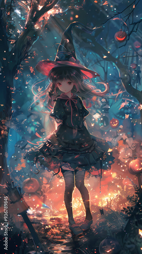 Cute Anime Manga Witch for Halloween Theme Fantasy Character Art