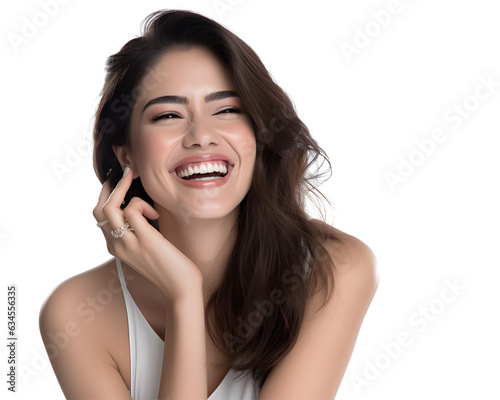 Cute Asian Girl Model Laughing with Joy, Isolated on Transparent Background, No Background