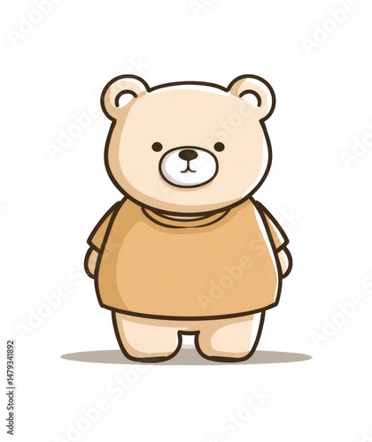 Cute bear wearing blue t-shirt, simple flat vector illustration clip art of kawaii adorable teddy bear