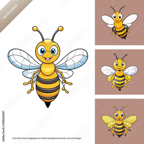 Cute Bee Insect Logotype Vector Art Set Design on White Background