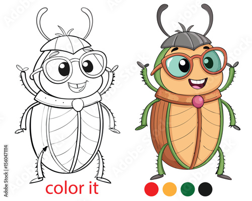 Cute Beetle Coloring Book for Kids – Big-Eyed Cartoon Bugs with Smiles & Fun Expressions