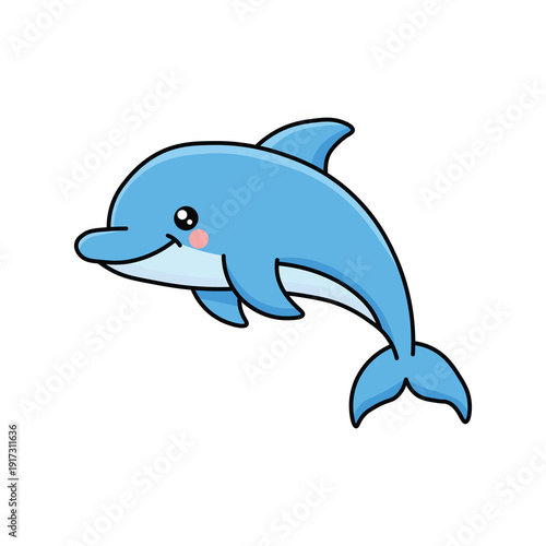 Cute Blue Dolphin Cartoon Vector Illustration