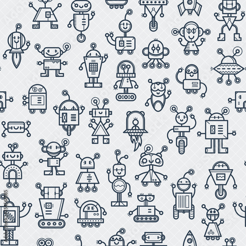 Cute bobots color seamless pattern. Endless texture with funny toys for kids or fiction