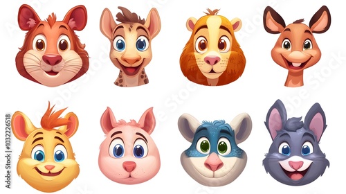 avatar, cartoon, illustration, animal, character, cute, dog, graphic, head, collection, face, happy, isolated, portrait, set, white, vector, children, comic, lion, mammal, mascot, pet, puppy, tail, funny, rhino, art, circle, concept, design, icon, signs, style, symbol, background, flat, africa, african, amusing, chic, clip art, cool, crying, cut-out, doggy, emotion, expression, facial