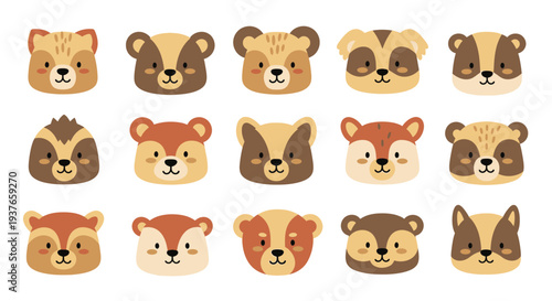 Cute Cartoon Animal Faces Collection: Bears, Badgers, and Foxes