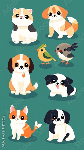 animal, cat, dog, kitten, puppy, parrot, dove, bird, cartoon, cute, illustration, character, pet, pet, friendly, adorable, graphic, design, clip art, mascot, icon, vector, isolated, white, black, brown, orange, yellow, green, blue, playful, happy, cheerful, fun, colourful, fauna, wildlife, nature, domestic, companion, veterinary
