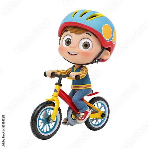 Cute cartoon boy riding a bicycle isolated on white background perfect for kids fun playtime and learning