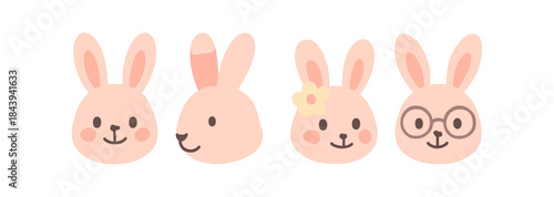 cute, cartoon, rabbit, face, accessory, flat, animal, pastel, cheerful, happy, rabbit, adorable, smile, goggles, flower, ear, character, art, design, pink, fun, playful, expression, collection, children, illustration, face, style, joy, decoration, whimsy