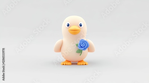 Cute Cartoon Duckling with Blue Rose 3D Render