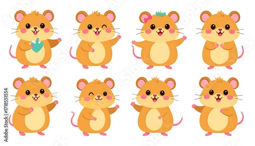 mouse, cartoon, cute, animal, character, design, illustration, adorable, happy, pose, expression, friendly, holding, leaf, nubes, pink, orange, yellow, set, collection, digital, vector, graphic, flat, style, childish, children