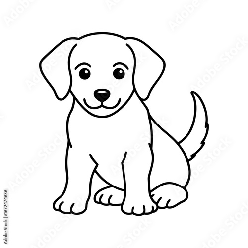 puppy, dog, cute, cartoon, drawing, illustration, animal, pet, canino, young, baby, adorable, friendly, playful, sitting, happy, smiling, joyful, domestic, mammal, furry, paw, ear, tail, black-and-white, outline, vignetting, simple, clean, vector, graphic, design, element, icon, clip art, line art, art, creature, breed, labrador, golden retriever, retriever, innocent, sweet, lovable, white background, isolated