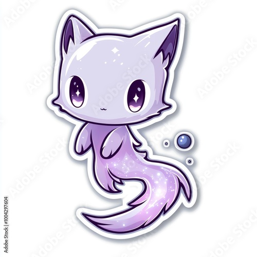 cartoon, cat, purple, tail, sparkling, adorable, anime, cute, pet, animal, fantasy, magical, mystic, illustration, digital artwork, sticker, graphic, design, playful, happy, friendly, fluffy, whisker, eye, big eye, small, tiny, sweet, charming, innocent, childish, pastel, girlie, kitten, felino