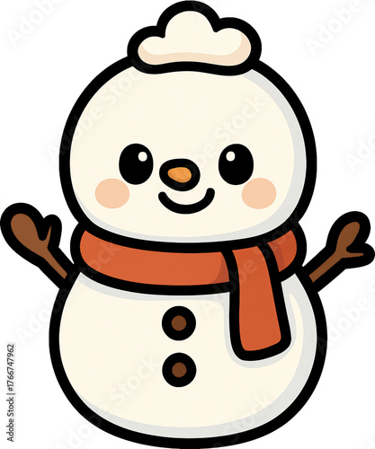 Cute Cartoon Snowman Character with Happy Expression and Orange Scarf for Winter Holidays.