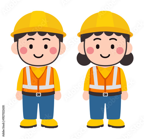Cute Construction Worker Character Set