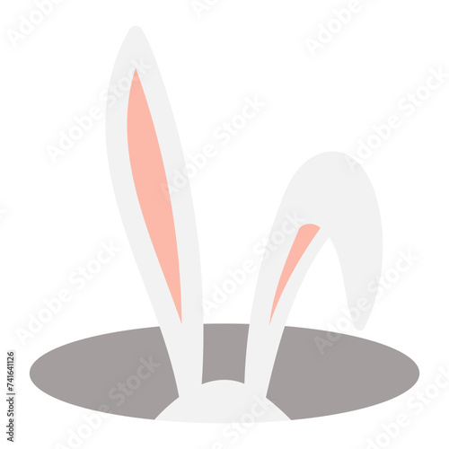 Cute Easter bunny, rabbit, hare ears sticking from the hole illustration. Hand drawn cartoon character, isolated vector. Flat style design. Holiday clip art, seasonal card, banner, poster, element