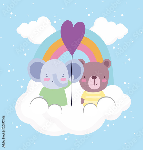 animal, cute, elephant, animal, bear, character, rainbow, balloon, cartoon, jungle, funny, wild, wildlife, happy, little, drawing, design, comic, cartoon, vector, illustration