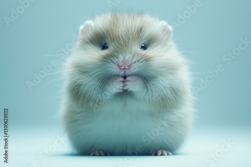 Cute fluffy hamster sitting and looking curiously at the camera in a well-lit environment with soft colors