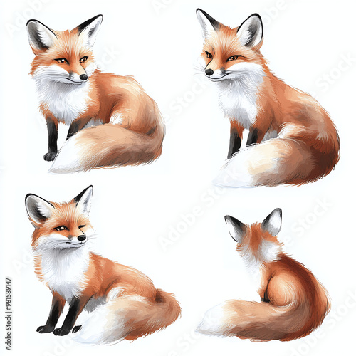 cute, fox, different, pose, clip art, white, background, charming, playful, detailed, colourful, adorable, whimsical, vibrant, expressive, cheerful, simple, engaging, artistic, friendly