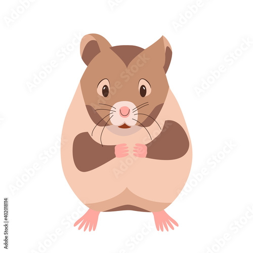 Cute funny hamster. Domestic pet guinea pig. Rodent cartoon character. Vector illustration isolated on white background. Small animal hamster. Clipart