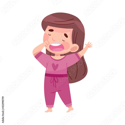 Cute Girl in Pajamas Stretching and Yawning Feeling Sleepy Vector Illustration